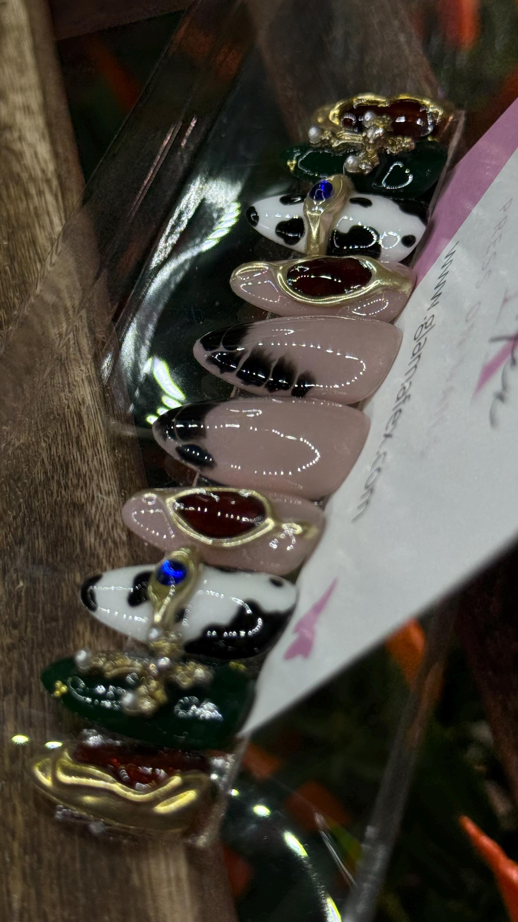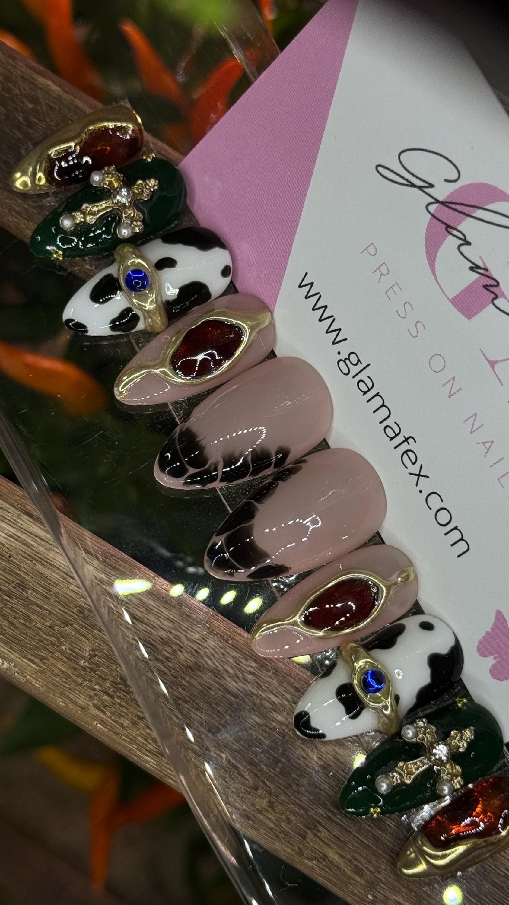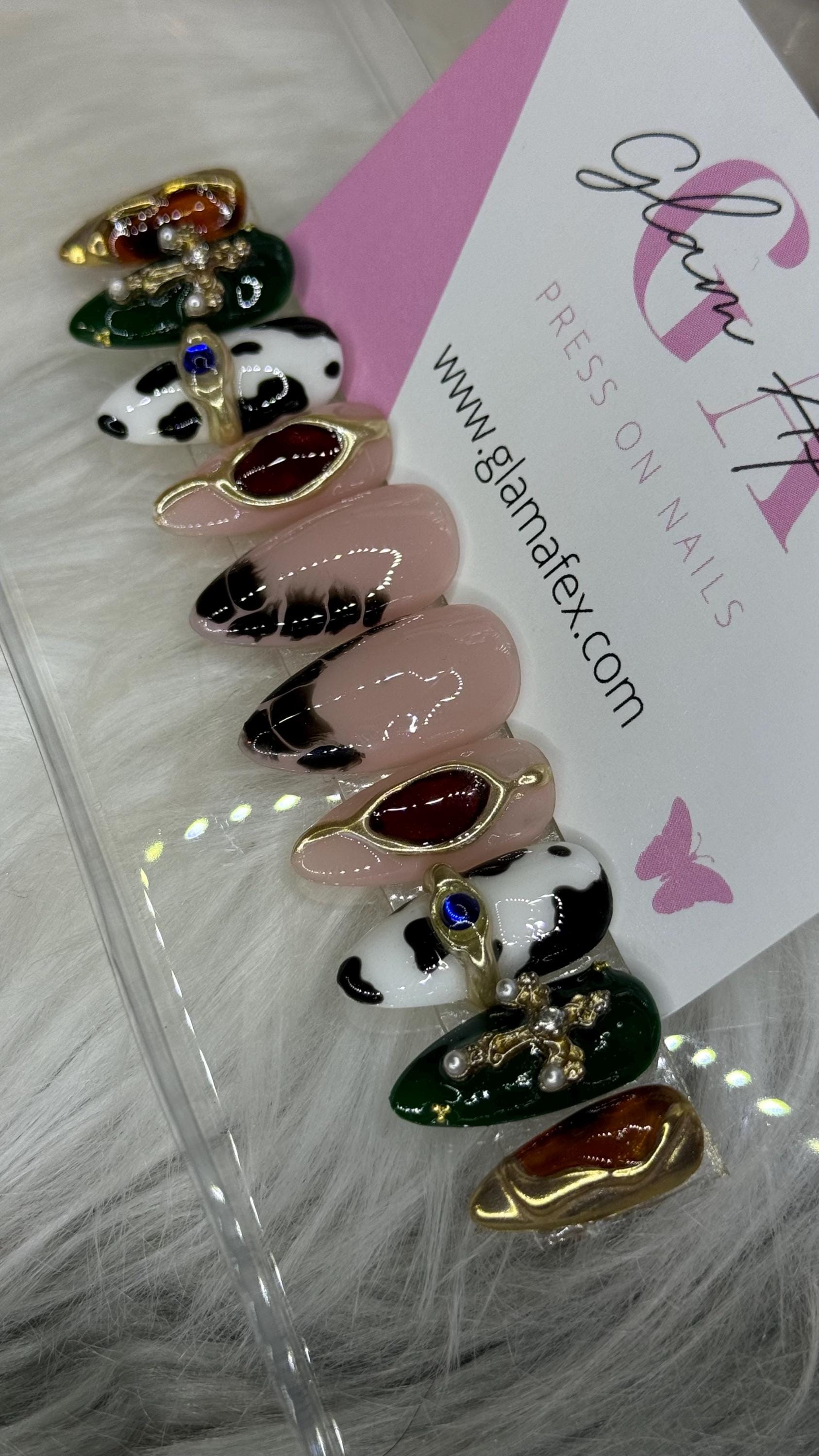 Set of 10 Custom made press on nails. Designed with Hard Gel for strength, thickness, and long lasting reusable nails.
